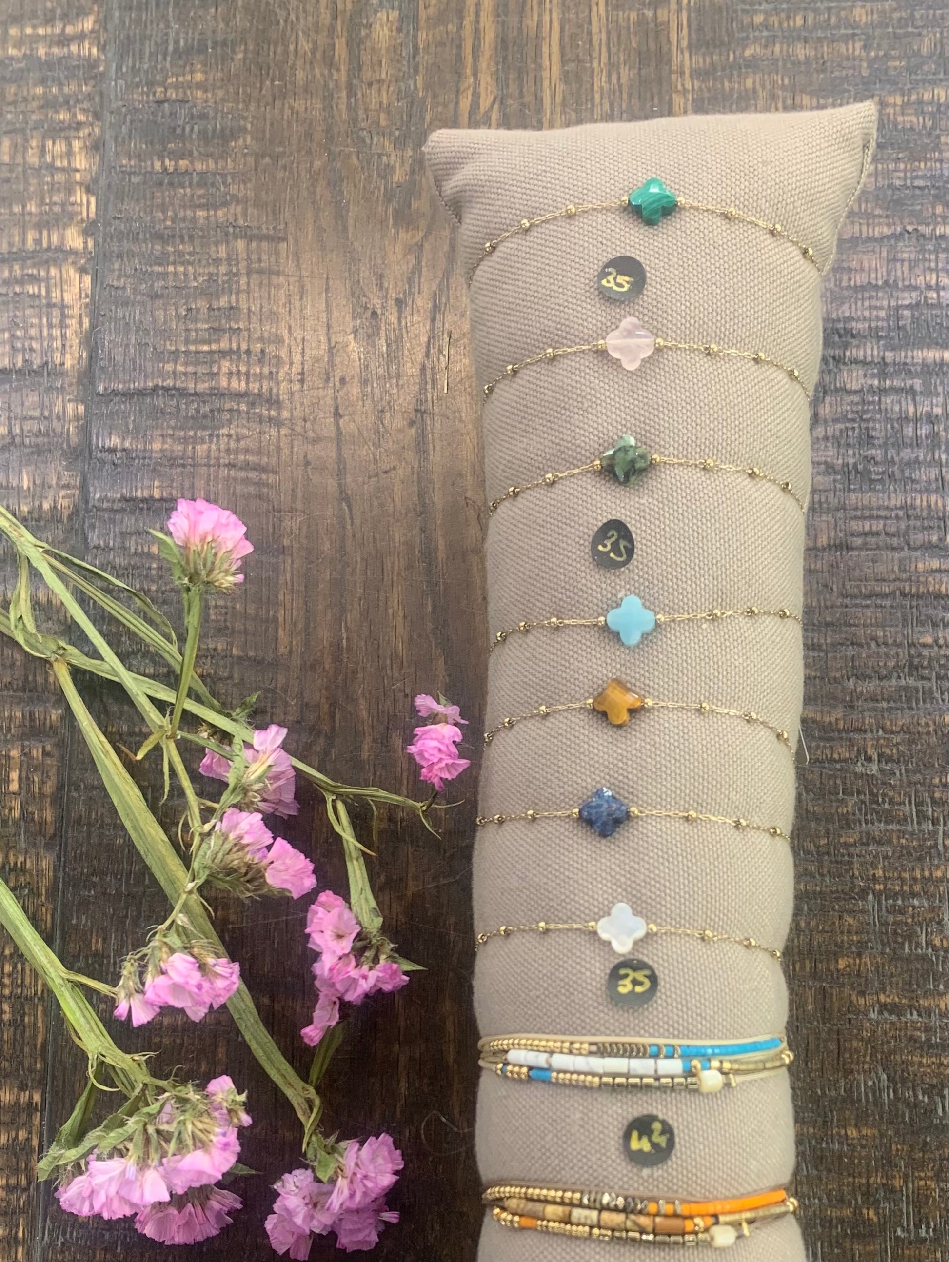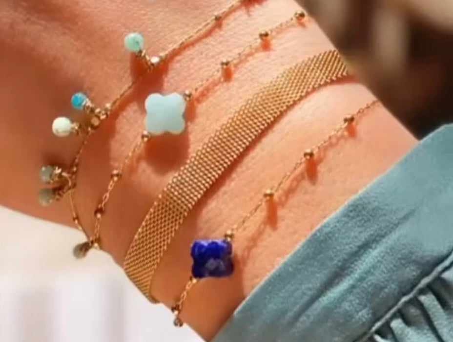 Bracelet trèfle Velasquez de Zag bijoux en pierre véritable sur chaîne acier doré inoxydable S’ajuste gracieux à votre poignet grâce à sa chaîne de réglage .