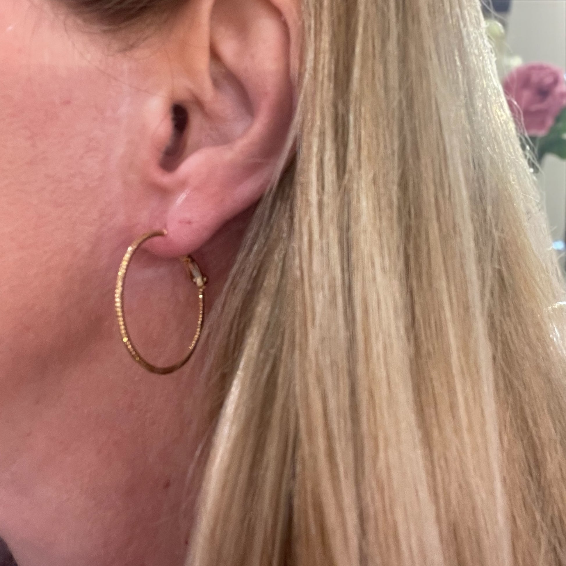 Créoles en plaqué or 3 microns de très belle qualité elles sont joliment ciselees ce qui donne beaucoup d'éclat à ce modèle . Se déclinent du 20 mm au 60 mm , donnent beaucoup de luminosité au visage . Le système de fermeture est simple et efficace .