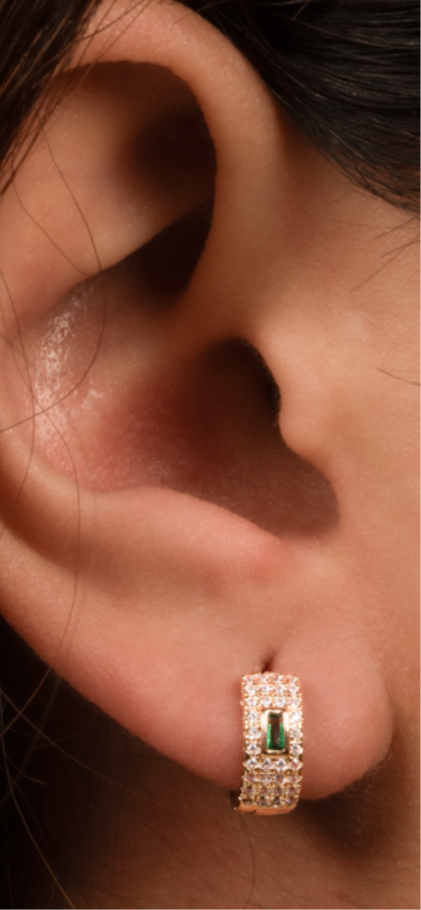 - Boucles d'oreilles en forme de créoles avec un pavé de strass et une pierre centrale rose ou verte . Pour un look raffiné et élégant . Se portent seules ou en accumulation .