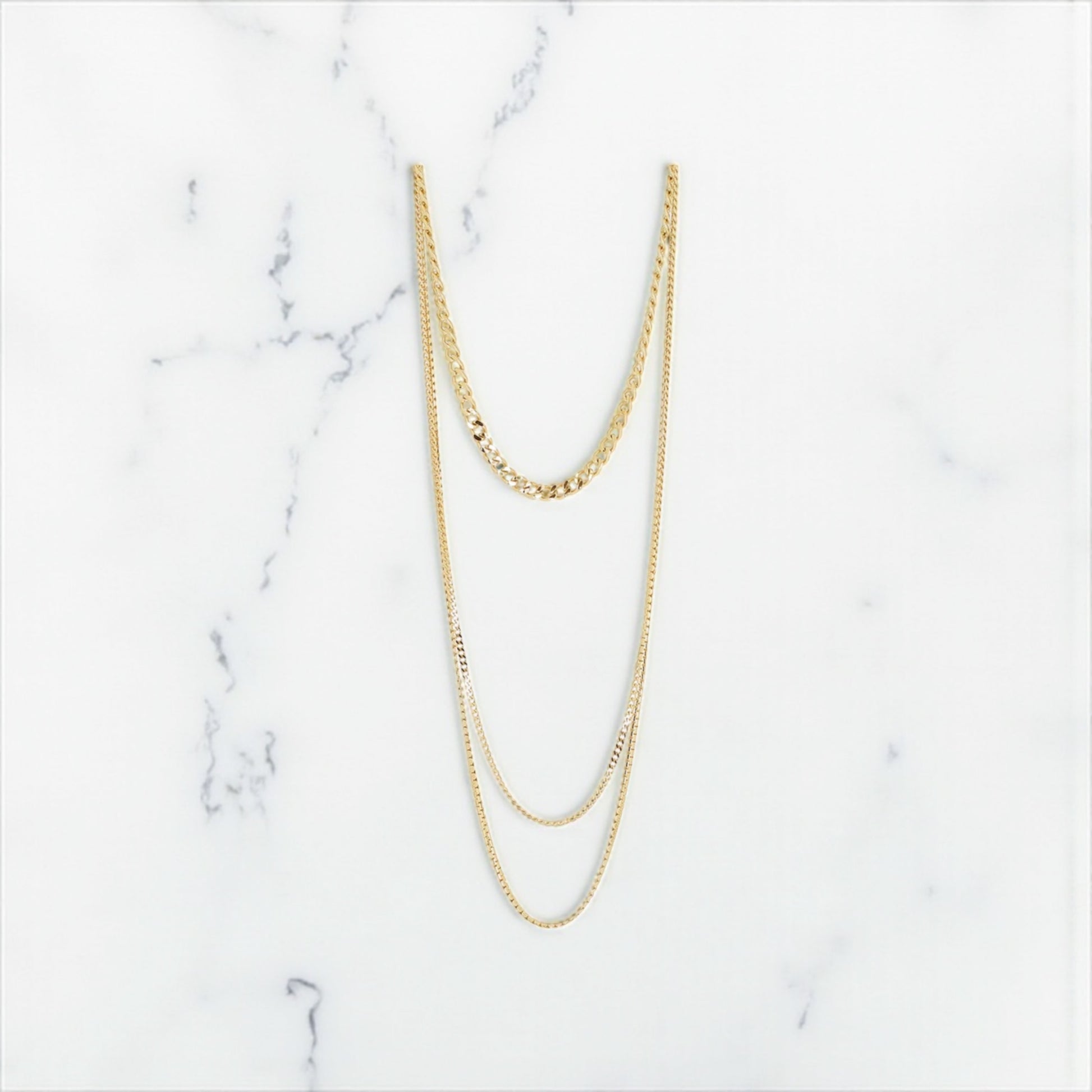 Sautoir multi-rangs en acier uni ou doré à l'or fin avec différents maillons. Existe aussi en acier blanc .